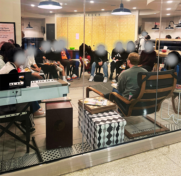 The chapel space, which resembles a coffee shop, offers a space for youth who come to the mall simply because they have nowhere else to go. Music, games, snacks, Bible studies, and genuine conversations pave the way for gospel encounters.