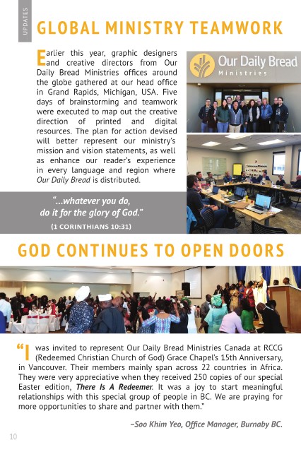 was invited to represent Our Daily Bread Ministries Canada at RCCG